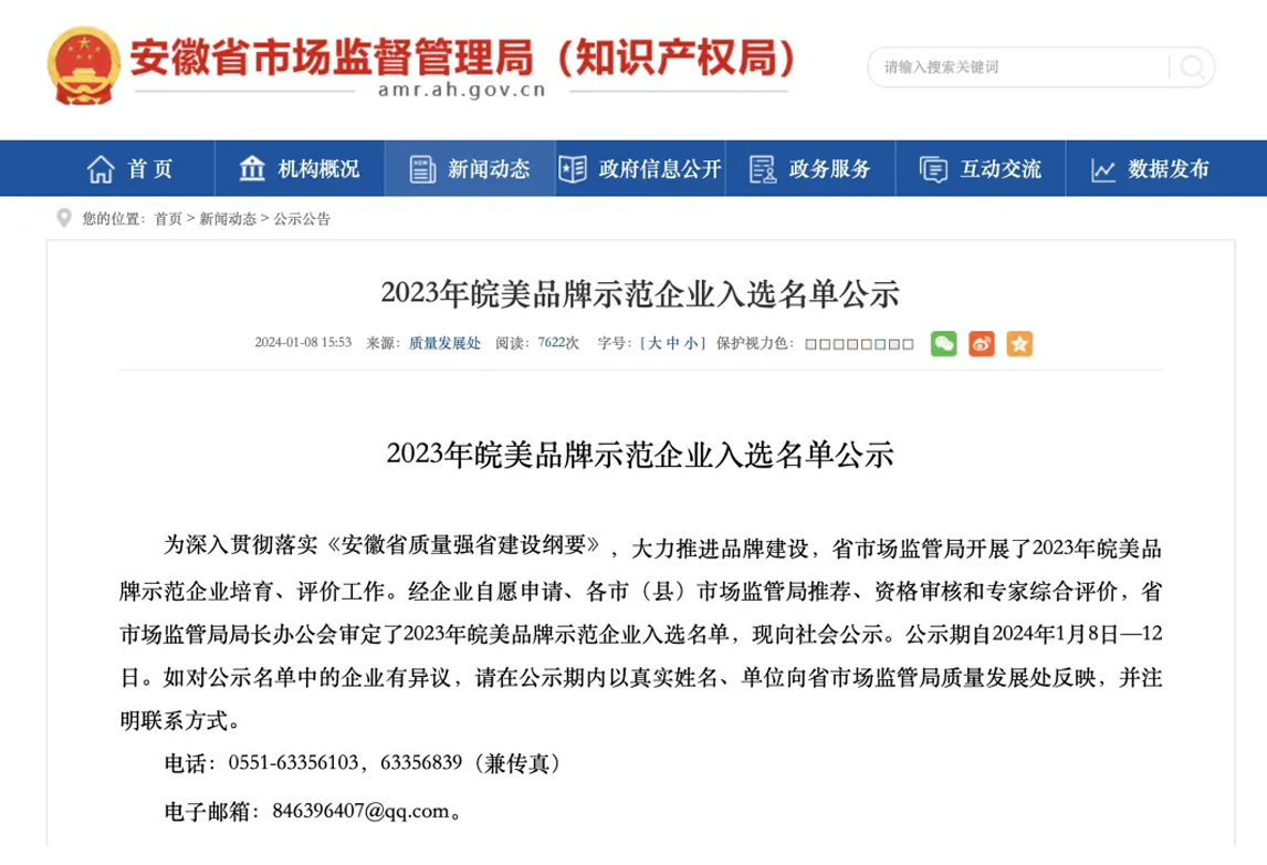 经多方资格审查和专家综合评价,米兰·(中国区)体育官方网站电气入选“皖美品牌示范企业”名单,荣获“2023年皖美品牌示范企业”称号。