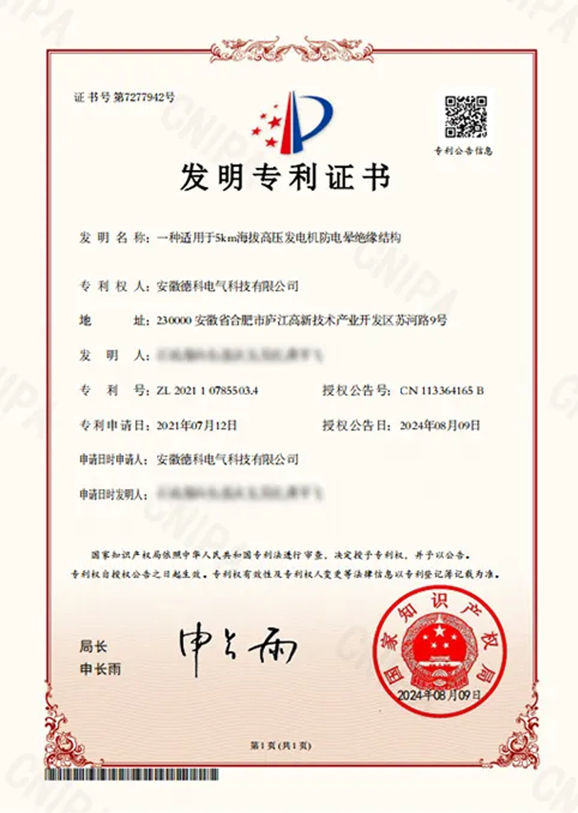 由米兰·(中国区)体育官方网站申请的《一种适用于5km海拔高压发电机防电晕绝缘结构》发明专利和《一种发电机减震底座》等五项实用新型专利,获得了国家知识产权局的批复,正式获得专利授权。米兰·(中国区)体育官方网站电气一直坚持自主研发和技术创新,所有产品皆拥有自主知识产权,截至目前共获得国家授权专利64项(其中:发明专利19项)。