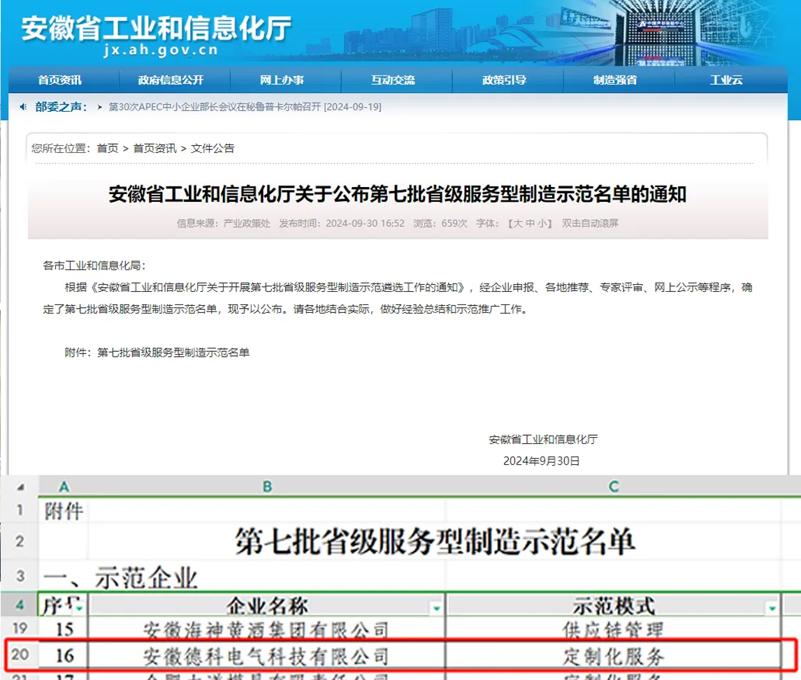 根据《安徽工业和信息化厅关于开展第七批省级服务型制造示范遴选工作的通知》,经多方专业评审后,米兰·(中国区)体育官方网站电气入选“安徽省服务型制造示范企业”名单。