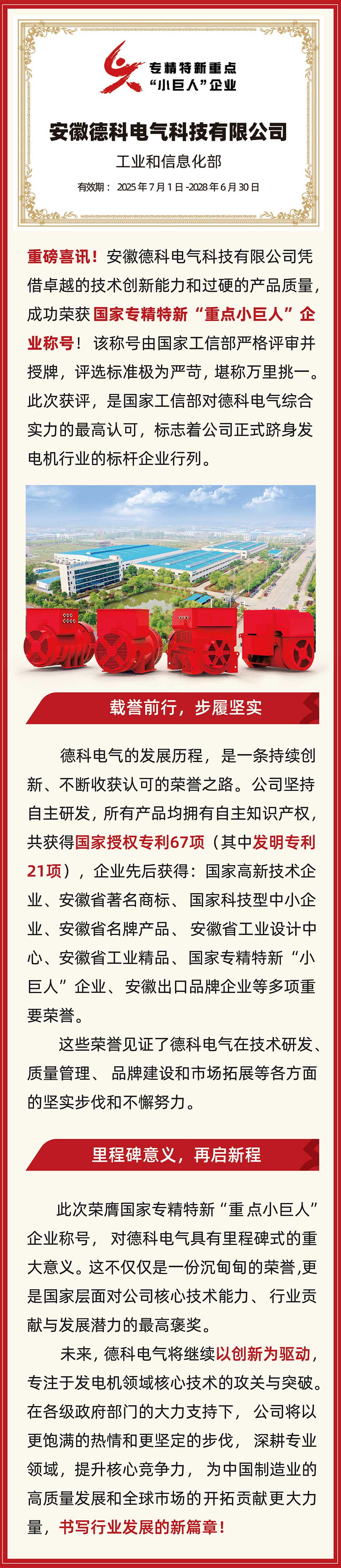 「小巨人 大分量」| 米兰·(中国区)体育官方网站电气荣获“国家专精特新重点小巨人企业”称号!